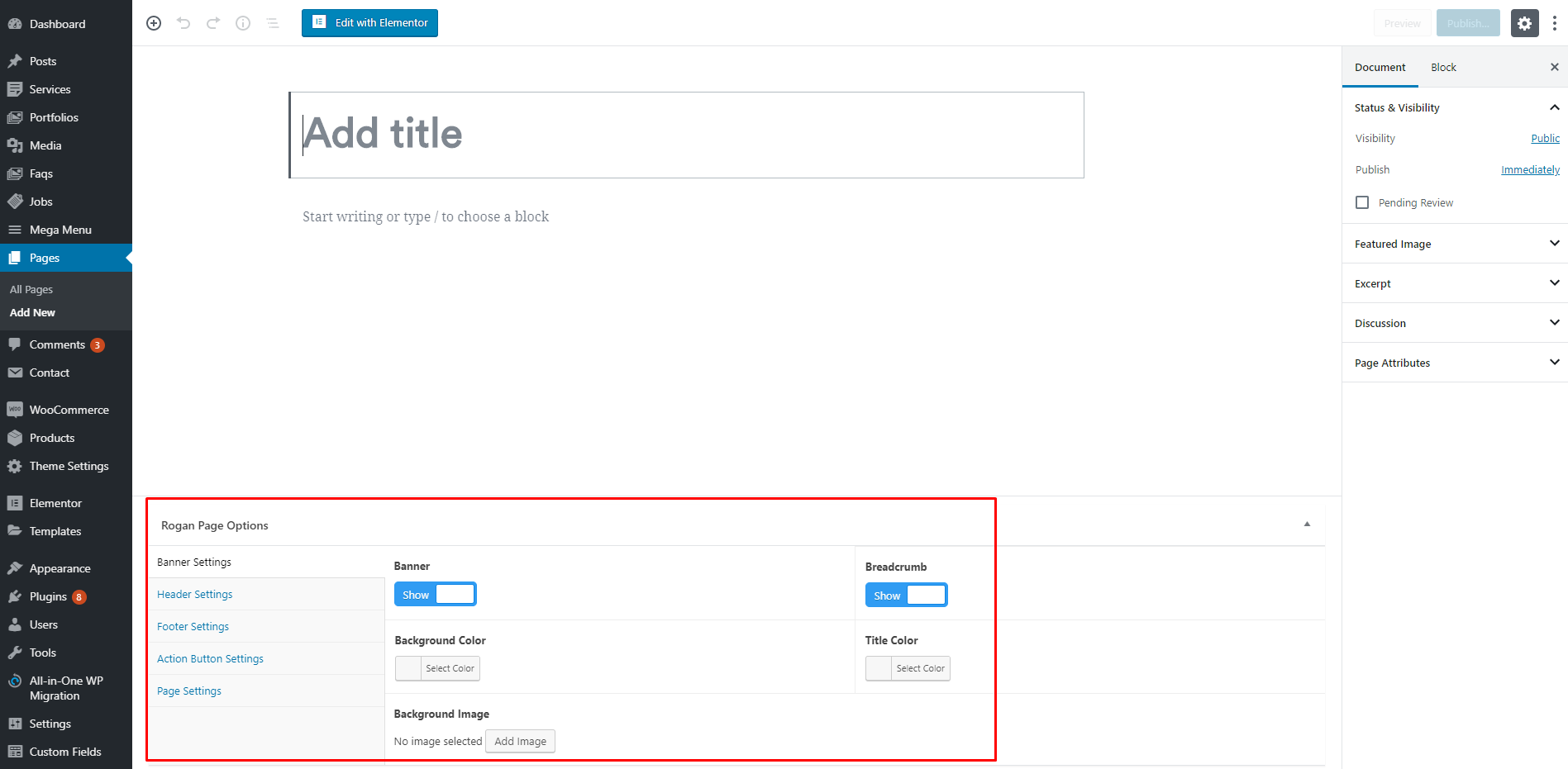 Rogan Page Options get even more interesting in the creative process. These are a set of options that can be used on every single page or post, and will only affect the individual page you use them on.